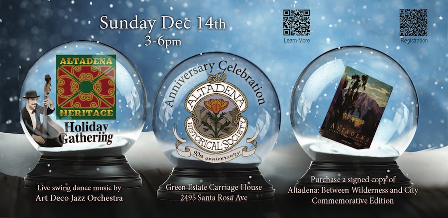 AHS members are invited a festive holiday party to celebrate the season and the launch of the new edition of Altadena: Between Wilderness and City.