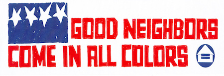 Throw in an extra ten bucks to receive a copy of this vintage bumper sticker, an artifact from the 1960s group Altadena Neighbors, welcoming all neighbors during the tumultuous civil rights era: