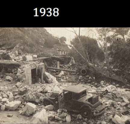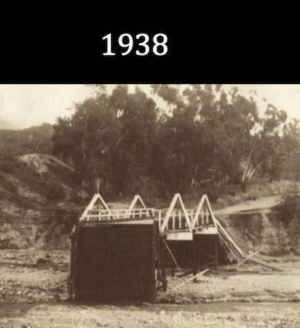 Altadena took a direct hit from the 1938 flood and the New York Avenue bridge, pictured above, was destroyed as illustrated in the picture below.