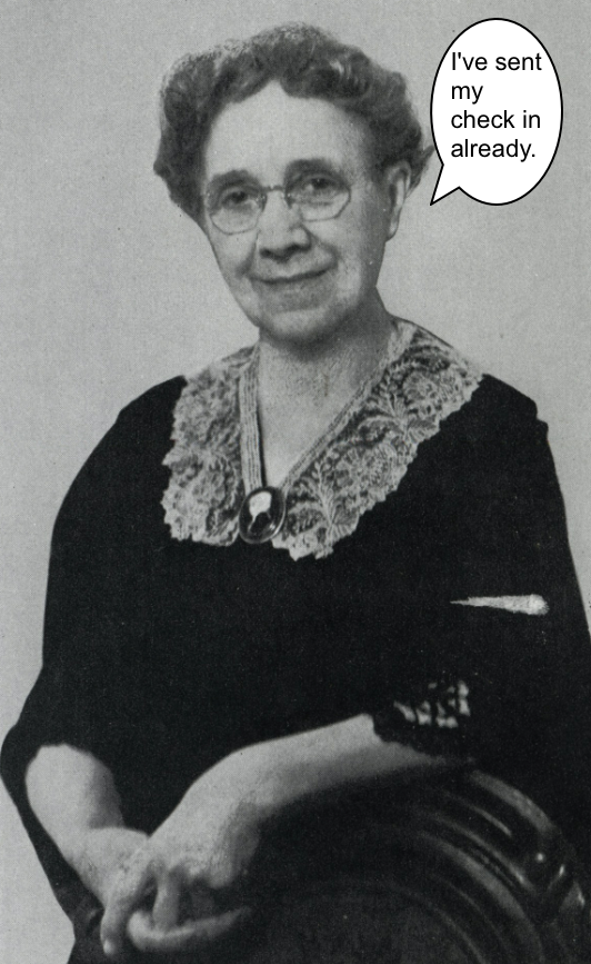 | Sara Noble Ives sent her check early. |
