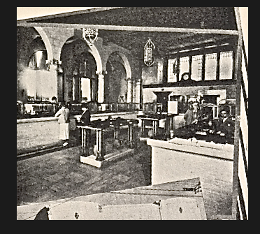 | Bank interior, about 1928 |